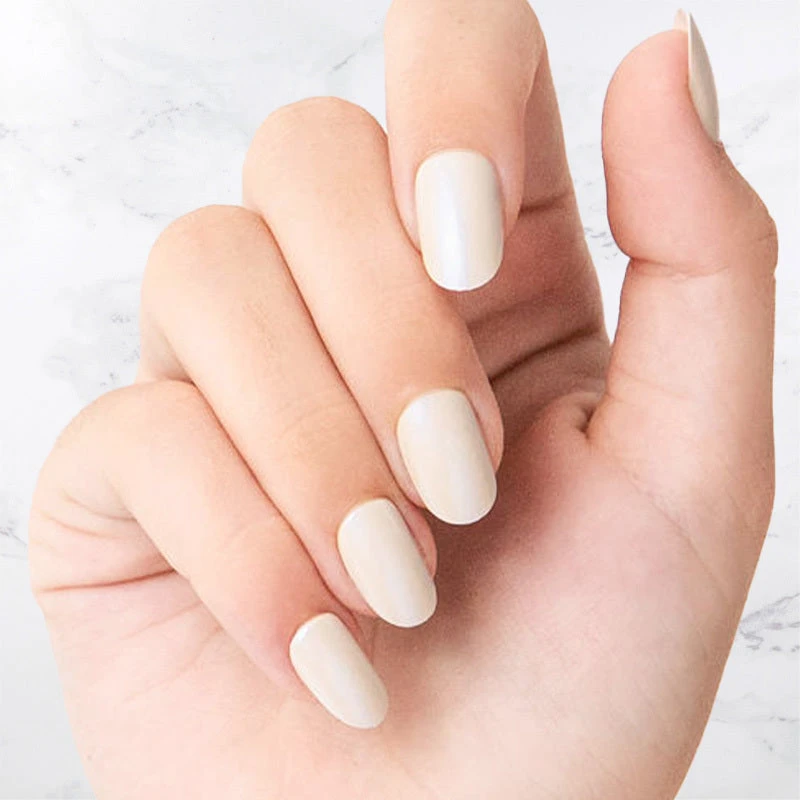 Achieve a classic and elegant manicure with these easy-to-apply, oval-shaped Sustainable Nails in an Ivory (Glazed) hue.